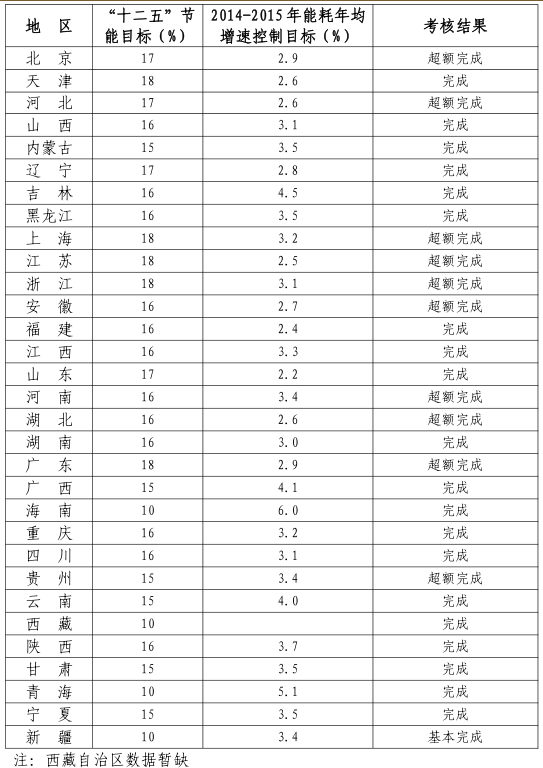 “十二五”各省節(jié)能目標完成情況公告