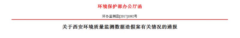 環(huán)保部:關(guān)于西安環(huán)境質(zhì)量監(jiān)測數(shù)據(jù)造假案有關(guān)情況的通報