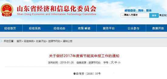 為落實節能考核獎懲制度,調動全社會開展節能工作的積極性和創造性,推動經濟社會綠色發展,根據《山東省節約能源條例》和《山東省節能獎勵辦法》(魯政辦字〔2018〕 ? 6號),現組織開展2017年度省節能獎申報工作。有關事項通知如下:
