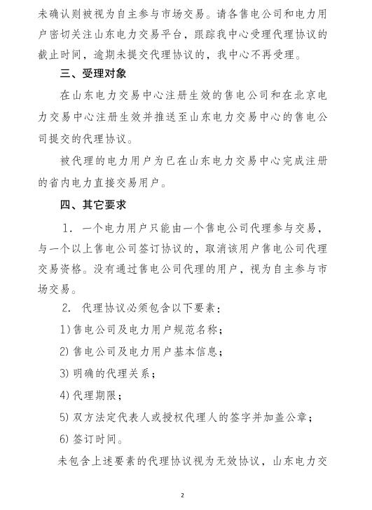 近日,山東電力交易中心發布《關于受理售電公司提交2018年省內電力交易用戶代理協議的通知》(以下簡稱“通知”),山東電力交易中心將組織開展2018年省內年度、月度電力直接交易。售電方為省內準入發電企業,購電方為省內準入電力用戶、售電公司。售電公司可代理所有省內直接交易用戶參與交易,代理期為2018年1月1日至2018年12月31日。